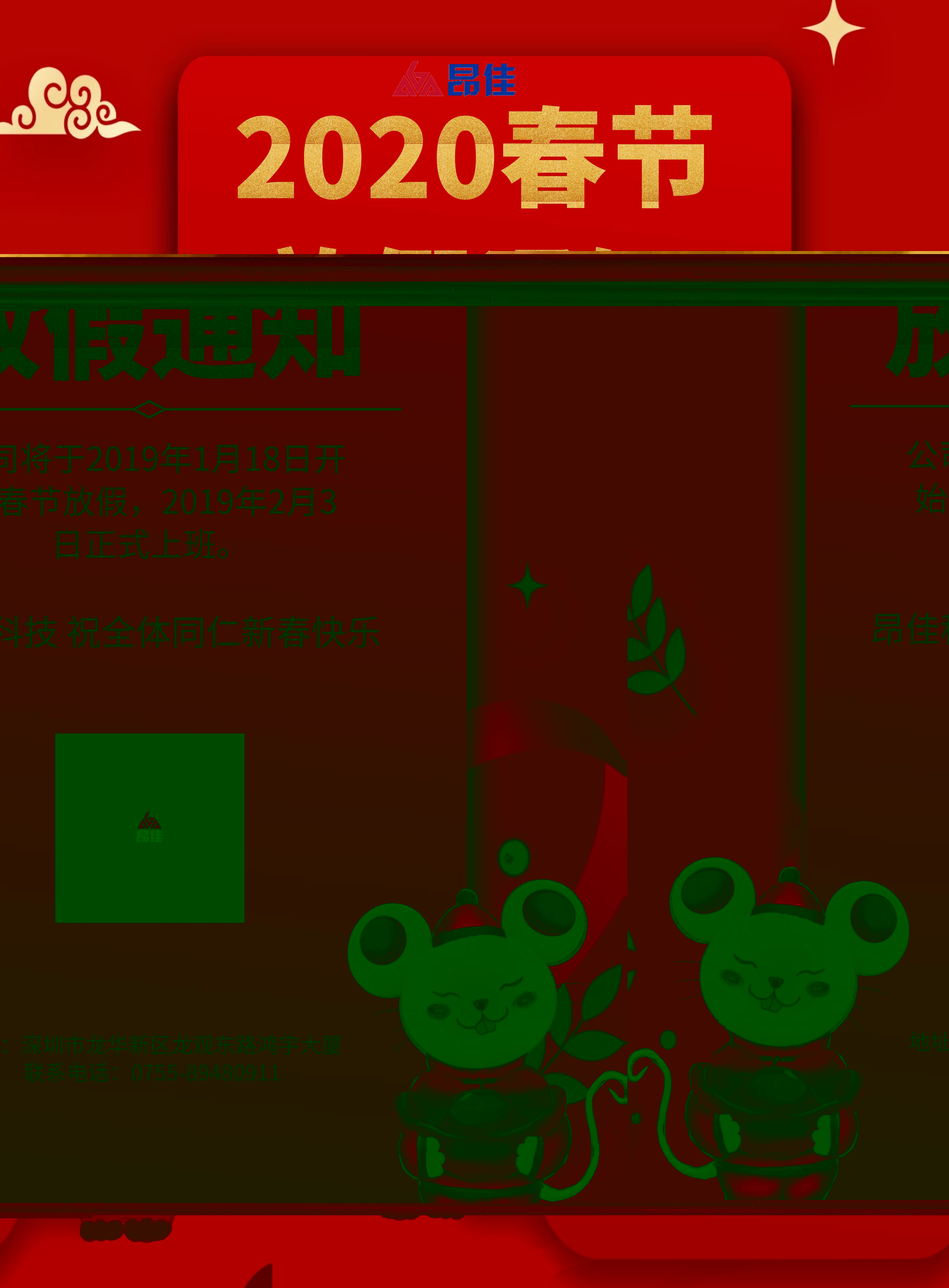 時(shí)光匆匆,2020年春節(jié)即將來(lái)臨,春節(jié)假期將如期而至。在此深深感謝您們長(zhǎng)期以來(lái)對(duì)公司的關(guān)心和支持,這里昂佳科技祝愿各位:一元復(fù)始、萬(wàn)象更新;年年如意、歲歲平安;財(cái)源廣進(jìn)、富貴吉祥;幸福安康、吉慶有余;竹報(bào)平安、財(cái)福滿門;喜氣洋洋、萬(wàn)事順心。