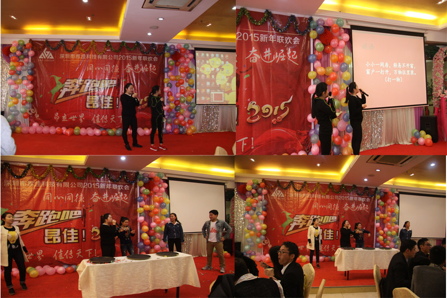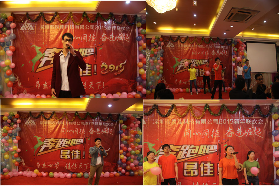 這些節目都是公司員工自發編排的,展現了深圳昂佳員工的青春風采。舞蹈《時光隧道》洋溢著青春的風采與活力,因精彩表現贏得滿堂彩聲,更為現場帶來陣陣歡笑;有獎競猜活動讓員工積極參與,其樂融融;持續全場的抽獎活動更是讓人尖叫不斷,期待連連……豐富多彩的節目把晚會不斷推向高潮,臺上霓虹閃爍、舞姿翩躚,臺下觀眾熱情吶喊,精彩表演不時贏得陣陣熱烈掌聲,公司不少員工還用相機拍下其中的精彩片段。