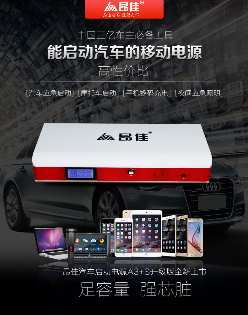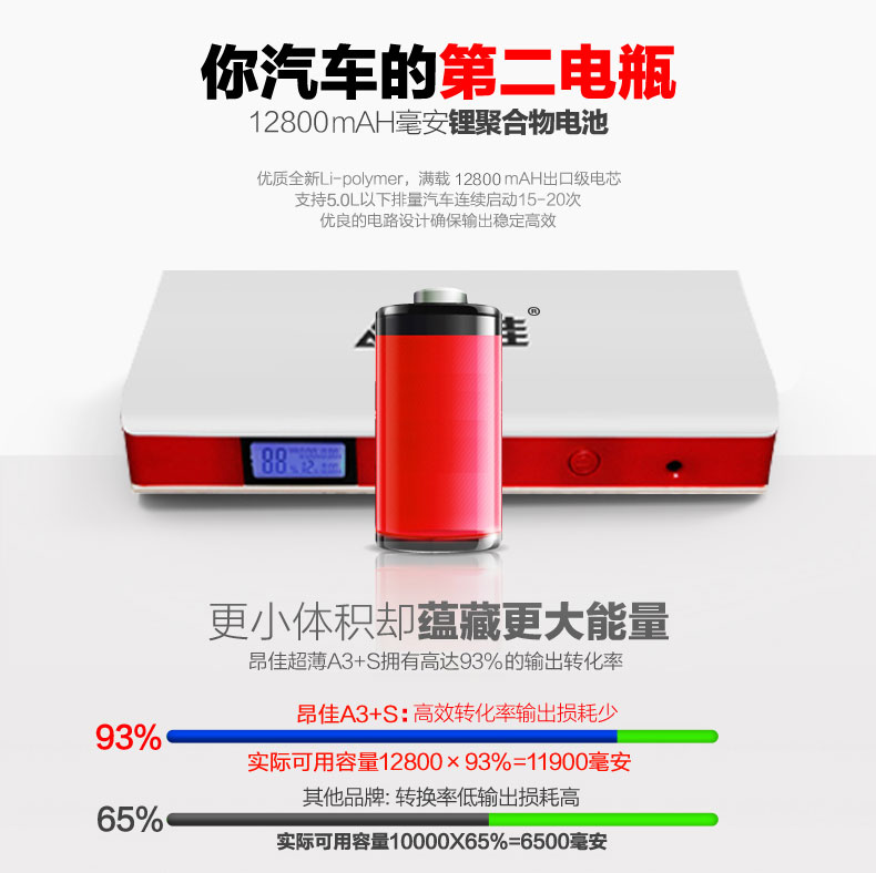 昂佳A3+S汽車應(yīng)急啟動電源 高倍率鈷酸鋰聚合物電池