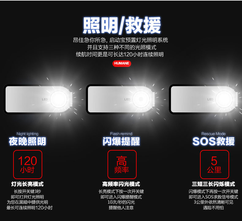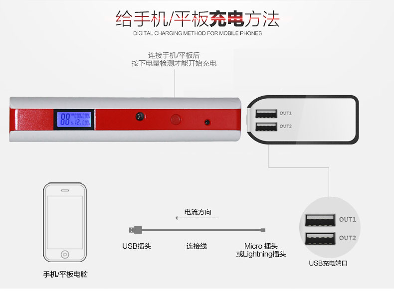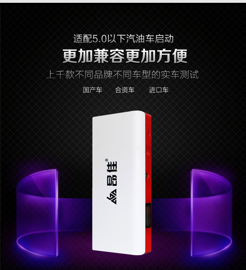 - 主要的功能:汽車應(yīng)急啟動、LED燈(照明、爆閃、SOS)另可對車載電器、手機、平板電腦、MP4、數(shù)碼相機、PDA、掌上游戲機、學(xué)習(xí)機等產(chǎn)品充電